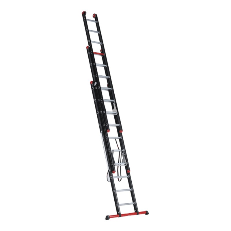 Automaatselt lukustuvad pöördkonksud ja ülaosas olevad rattad muudavad redeli tõstmise ja langetamise lihtsaks.